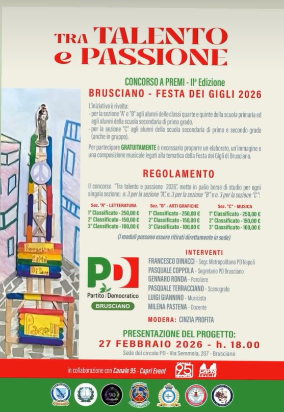 Tutta la cittadinanza e le associazioni sono invitate alla conferenza stampa di venerdì 27 febbraio alle ore 18:00 presso il circolo del Partito Democratico, in via Semmola 207, per presentare la seconda edizione del progetto “Tra Talento e Passione” ricco di novità, nuove opportunità e sorprese tutte da scoprire. Sarà un momento importante di incontro, condivisione e partecipazione per tutta la comunità. Un’occasione per conoscere da vicino idee, obiettivi e protagonisti del progetto. NON MANCATE: la vostra presenza farà la differenza! Vi aspettiamo!