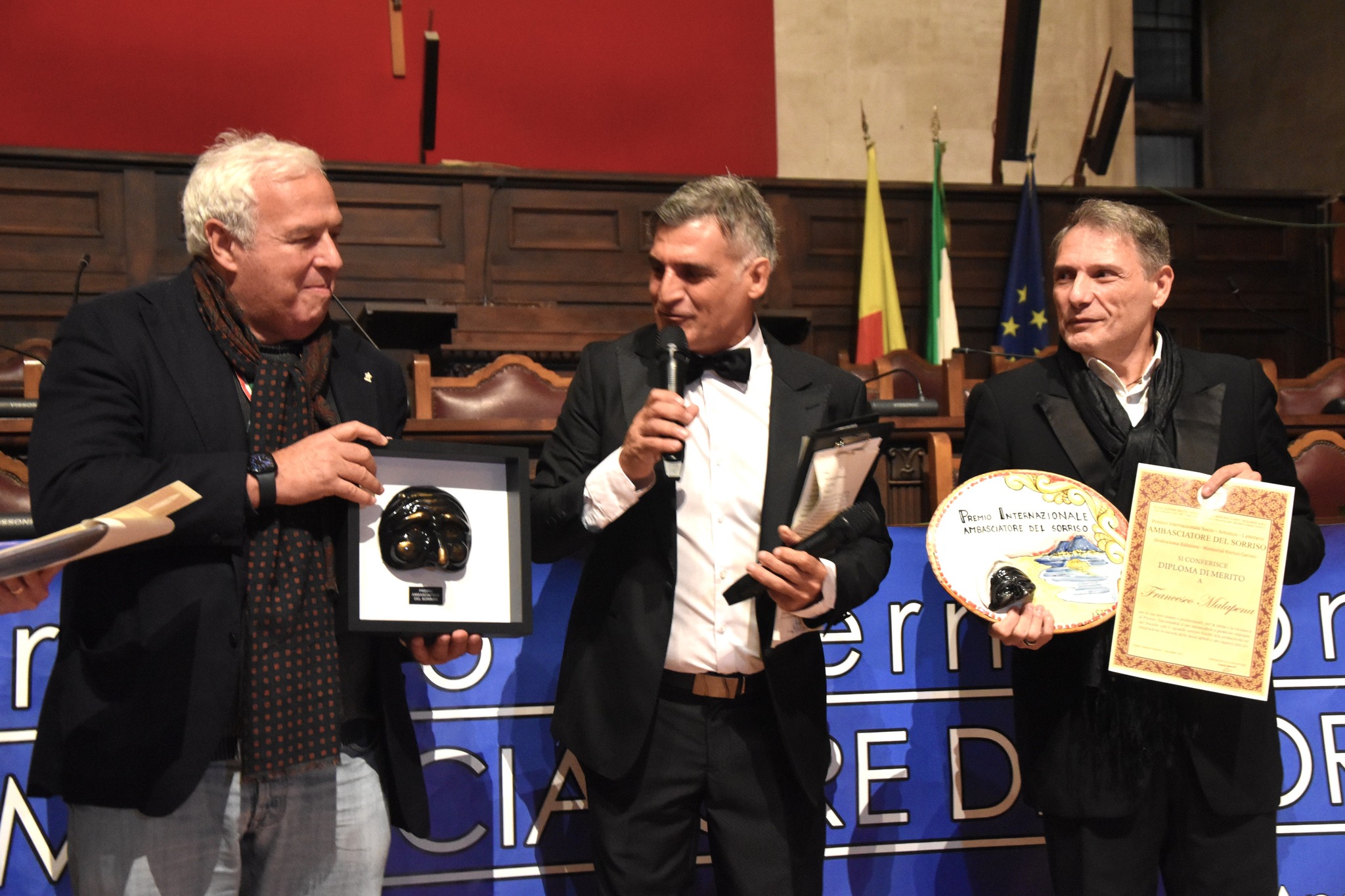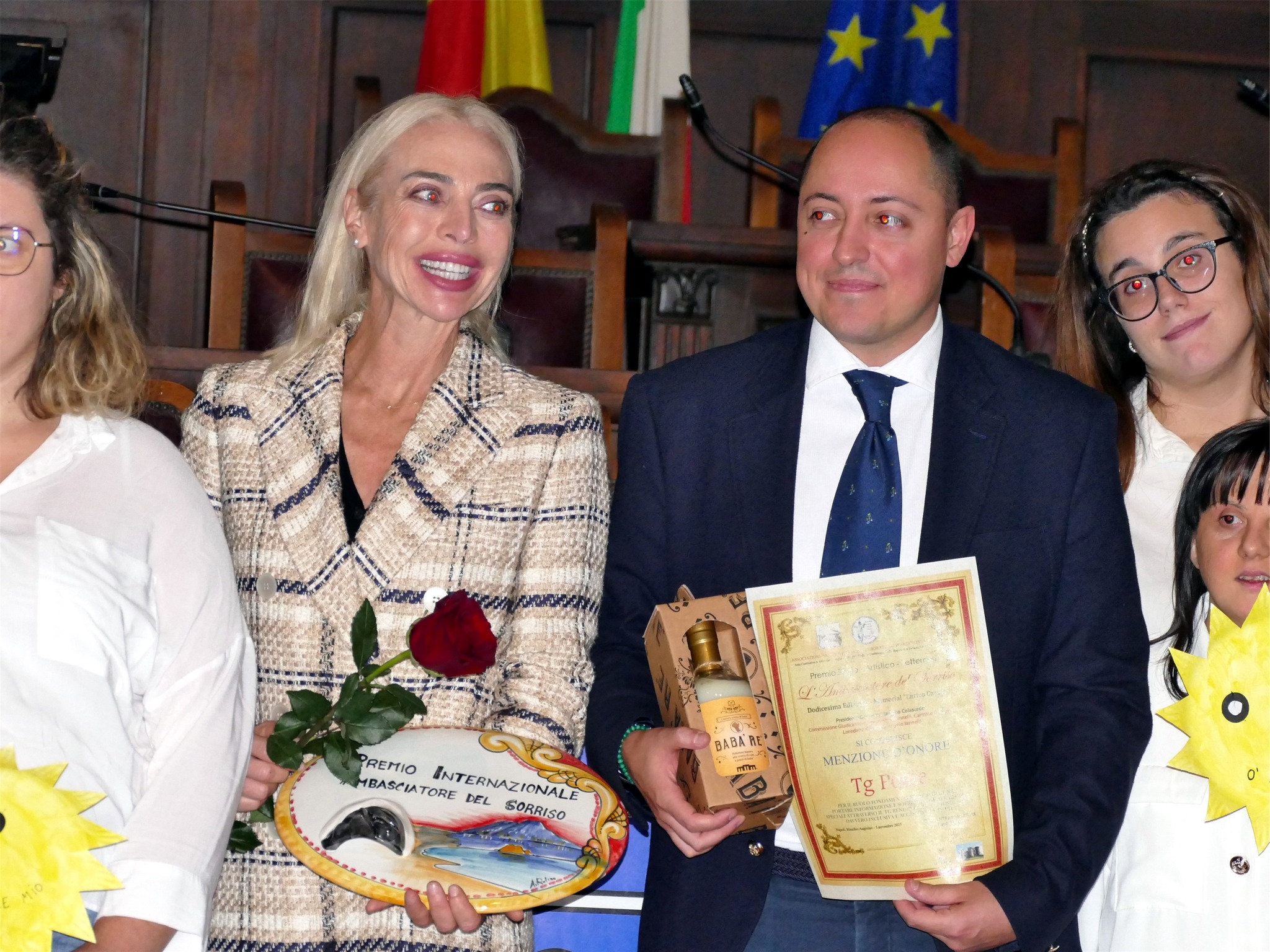 Napoli – Strepitoso successo nella splendida cornice della Sala dei Baroni del Maschio Angioino di Napoli per la dodicesima edizione del prestigioso Premio Internazionale “ Ambasciatore del Sorriso” speciale Percorsi D’arte XVIII edizione. Il Premio fondato dall’artista poliedrico Angelo Iannelli definito ambasciatore del sorriso per il suo instancabile impegno nel sociale, organizzato dall’Associazione Vesuvius A.P.S in collaborazione con il Comune di Napoli con il patrocinio morale e la vicinanza della Diocesi di Napoli. Il prestigioso Premio. La kermesse di questa storica edizione è dedicata al tenore Enrico Caruso ambasciatore della canzone napoletana nel mondo considerato uno dei tenori più grandi di tutti i tempi. Ad essere premiati sono stati professionisti dei più disparati ambiti: il tenore internazionale Francesco Malapena , Il Tg Poste Italiane direttrice Federica De Santis ,il giornalista Rai Gianfranco Coppola, La Casa Museo “Enrico Caruso “direttore Gaetano Bonelli il Caporedattore Agenzia Stampa Italia Rosario Lavorgna , l’attore comico Peppe Laurato, il pasticciere Ugo Mignone, il giornalista Gennaro Savio, le cantanti: Teresa Moccia e Carmen Navarro quest’ultima come talento giovane dell’anno ,l’artista Giovanna Castiglia che ha donato un suo capolavoro della sua arte macrè all’ambasciatore de Sorriso Angelo Iannelli.