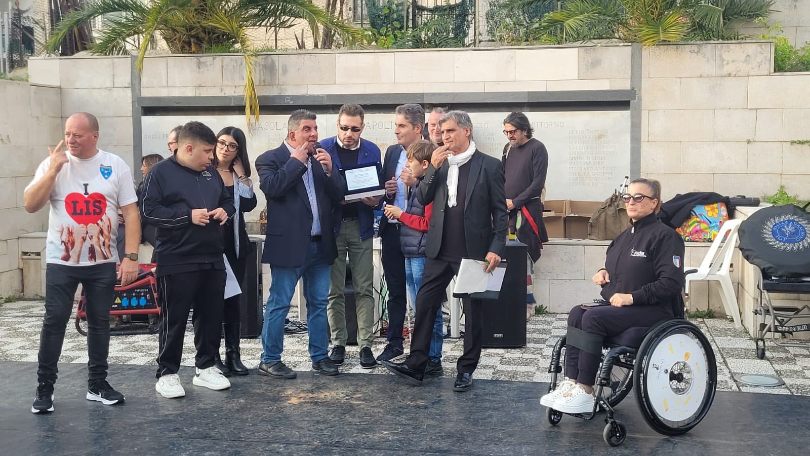 La kermesse è iniziata con la marcia della Banda Musicale “R. Viviani” contemporaneamente il cielo si illuminava di fuochi e tricolore, a seguire ’Inno Nazionale, glorificato dalla benedizione del Parroco Don Salvatore Coppola. La manifestazione si è aperta con il saluto del Sindaco di Casola di Napoli Rosalba Alfredo entusiasta per l’iniziativa, si è complimentato con il Presidente di Abili alla Vita, Dott. Pasquale Santarpia e con l’attore, presentatore, direttore artistico e curatore evento (l’ambasciatore del Sorriso) Angelo Iannelli a cui a breve verrà conferita la cittadinanza onoraria per il suo impegno sociale da tantissimi anni. Tante le autorità istituzionali presenti, sia civili che militari che non hanno fatto mancare la vicinanza alla lodevole iniziativa: l’assessora Politiche Sociali Regione Campania Lucia Fortini, gli onorevoli Carmine Mocerino e Ciro Campana, il vicepresidente A.N.C.I Ciro Buonaiuto e l’amministrazione comunale di Casola di Napoli e il Consigliere Comunale di Gragnano Catello Scotogliella tutti hanno espresso parole di vicinanza alla manifestazione.