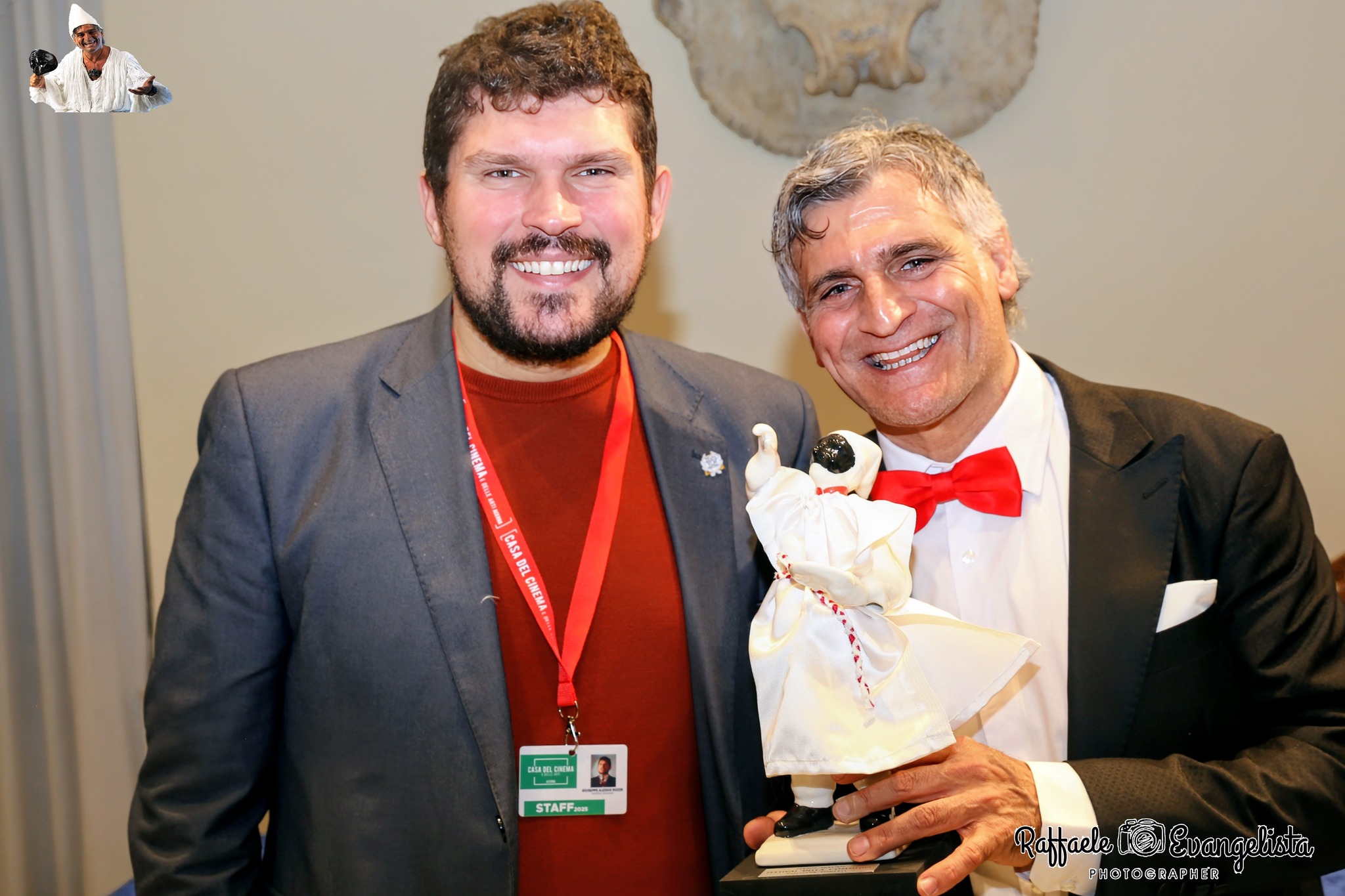 In questa edizione del Pulcinella Film Festival tra i premiati ricordiamo anche Angelo Iannelli interprete della maschera di Pulcinella e simbolo del Festival da quasi un decennio sempre presente alla manifestazione con la sua allegria e ironia. L’ambasciatore del Sorriso è stato premiato in una sala gremita durante la sua mostra fotografica al Castello dei Conti di Acerra “Pulcinella Tra Vicoli, Panorami e Suoni” dal Direttore Artistico e Ideatore del Pulcinella Film Festival Giuseppe Alessio Nuzzo a consegnare l’opera dell’artista Nuzzo Salvatore, il Sindaco di Acerra Tito D’errico alla presenza del Direttore del Museo di Acerra Tommaso Esposito e di diverse personalità . Nel corso di queste edizioni Angelo Iannelli con la sua simpatia la sua energia, il suo entusiasmo e riuscito a coinvolgere a far ballare la tarantella e cantare con gioia alcuni versi della canzone di Pulcinella a tanti giovani e artisti, ormai famoso a tutti lo slogan “Pulcinella Sapite Chere’!Perepe! Perepe, Perepe citiamo alcuni grandi artisti che si sono fatti coinvolgere dalla sua allegria: Anna Falchi, Jerry Calà, Roon Moss, Antonio Milo, Gino Rivieccio e tanti altri.