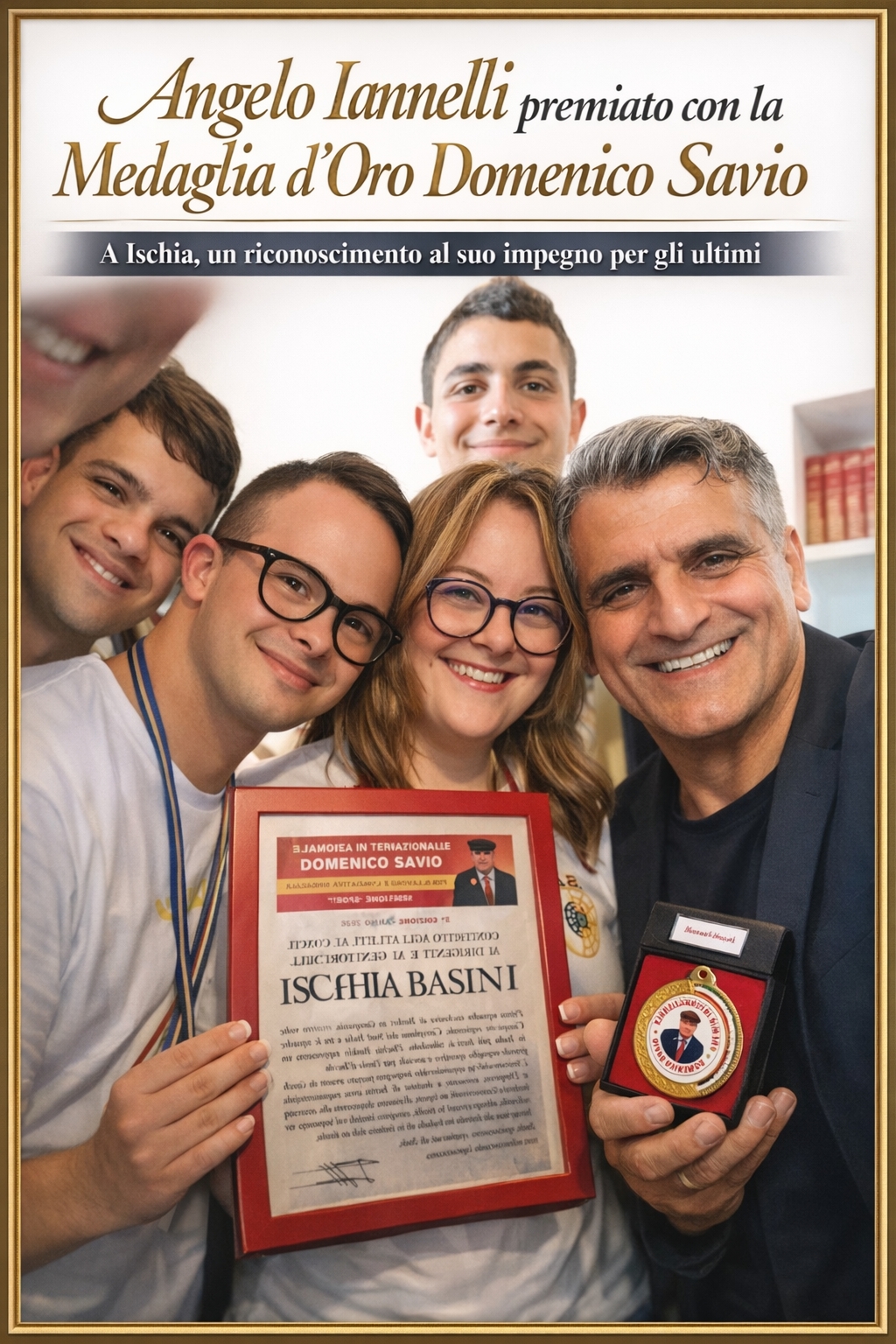 Angelo Iannelli insignito della Medaglia d’Oro Domenico Savio per il suo impegno sociale a Ischia